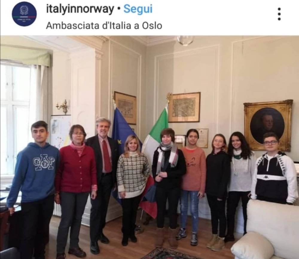 “Dal 4 al 10 novembre ho preso parte al progetto Erasmus+, organizzato dalle scuole europee coinvolte, che quest'anno ha avuto sede a Lena, Norvegia. Sono stata ospitata da una famiglia norvegese che mi ha accolta calorosamente e insieme a me c'era un altro ragazzo italiano, una ragazza ceca e una ragazza tedesca. Ogni mattina prendevamo l'autobus per andare a scuola, dove partecipavamo a workshop in inglese con esperti dei diritti umani e dei diritti dei bambini. Dopo la pausa pranzo guardavamo un film sulle tematiche trattate durante i workshop e terminavamo discutendoli in gruppi. Durante la gita a Oslo abbiamo avuto l'opportunità di incontrare l'ambasciatore italiano della Norvegia, che ci ha parlato della percentuale di italiani nel paese e delle agevolazioni che il Paese offre a chi sceglie di studiare lì per poi lavorare. È stata una bellissima esperienza e una totale immersione nella lingua inglese che mi ha resa più sicura di me e fluente nell'esposizione orale.”